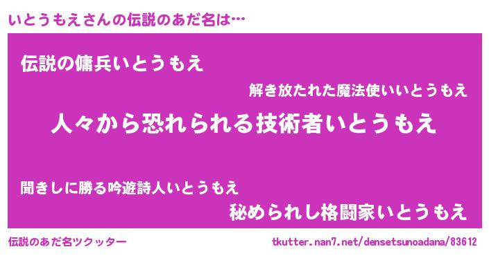 | ヘコむあだ名 | 『いとにー』『つくし』『いとを』 |