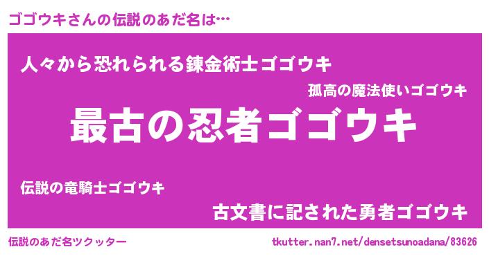 | ファンタジー風あだ名 | 『ゼゴゴトゥ』『エターナルゴゴウキー』 |