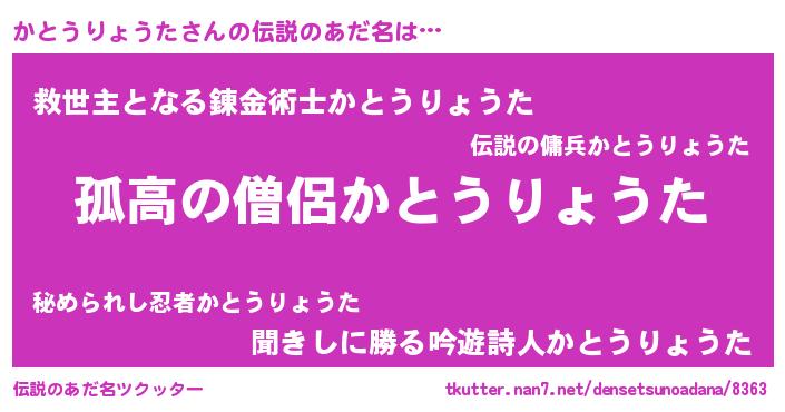 | 男性向けラノベタイトル風あだ名 | 『カトウリョウタスレイヤー』 |