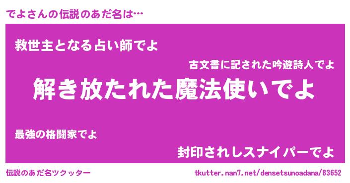 | ヒーロー風カッコイイあだ名 | 『幻影騎士デヨ』『正義の使者でよ』 |