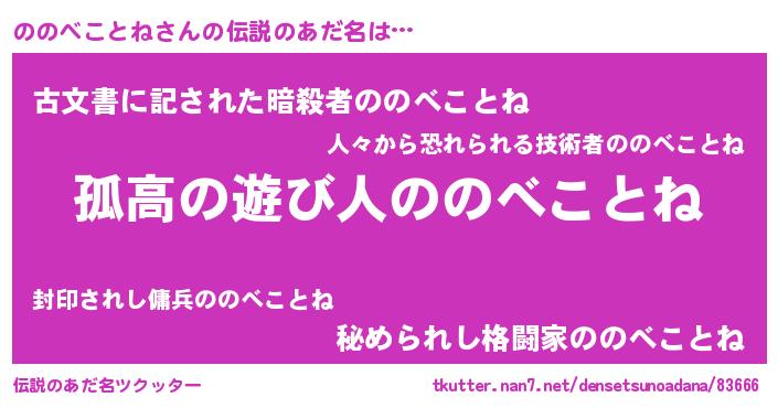 | 女子向けラノベタイトル風あだ名 | 『ののべことねなんてお断りですっ。』 |
