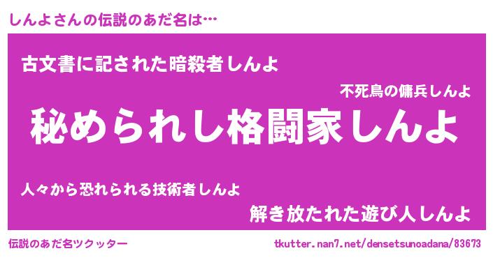 | ファンタジー風あだ名 | 『エターナルシンヨー』『カークシンラー』 |