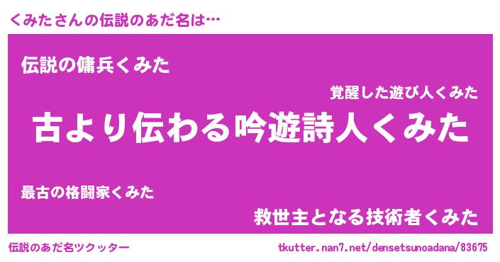 | 意味不明あだ名 | 『住所不定無職くみた(4歳)』『自称くみた』 |