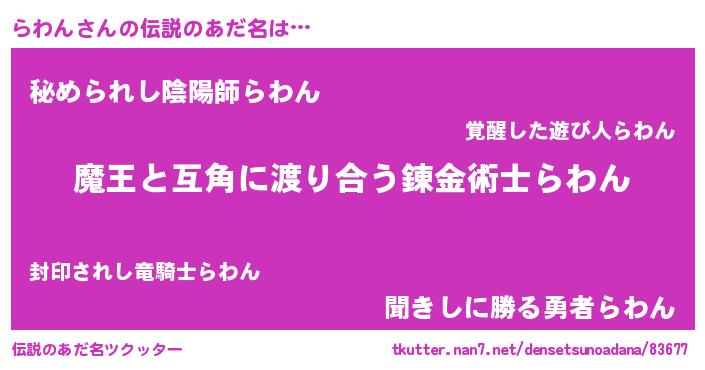 | ポケモン風あだ名 | 『ラックウザ』『ラワンダネ』 |
