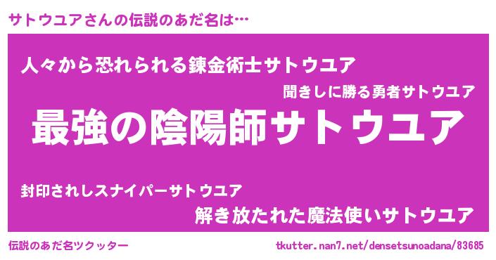 | ヒーロー風カッコイイあだ名 | 『仮面サトダー』『正義の使者サトウユア』 |