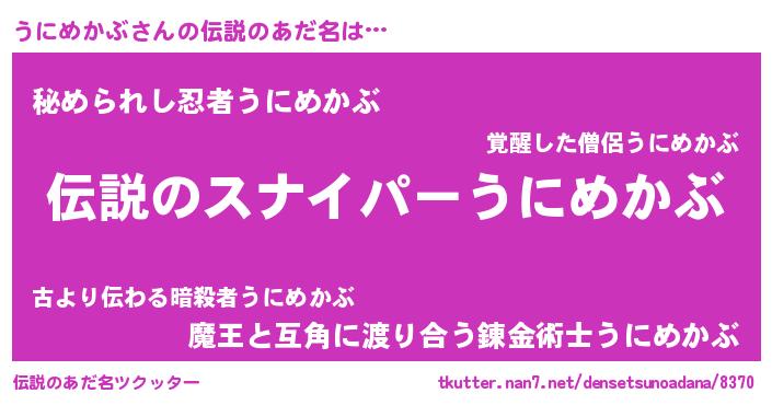 | ヒーロー風カッコイイあだ名 | 『スーパーウニメカブ』『魔戒騎士ウニ』 |