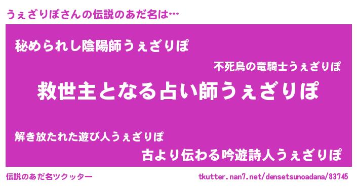 | 意味不明あだ名 | 『住所不定無職うぇざりぽ(50歳)』 |