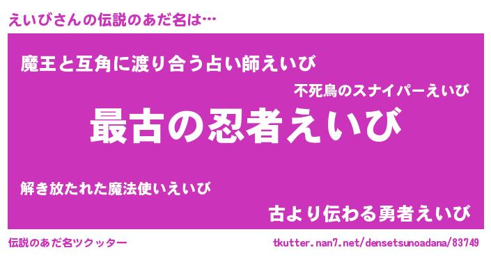 | 意味不明あだ名 | 『えいびフォーエバー』『永久保存えいび』 |