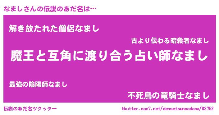 | 意味不明あだ名 | 『なめこ科なまし属』『自称なまし』 |