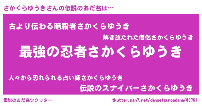 | ヒーロー風カッコイイあだ名 | 『仮面サカダー』『ネオサカクラユウキ』 |
