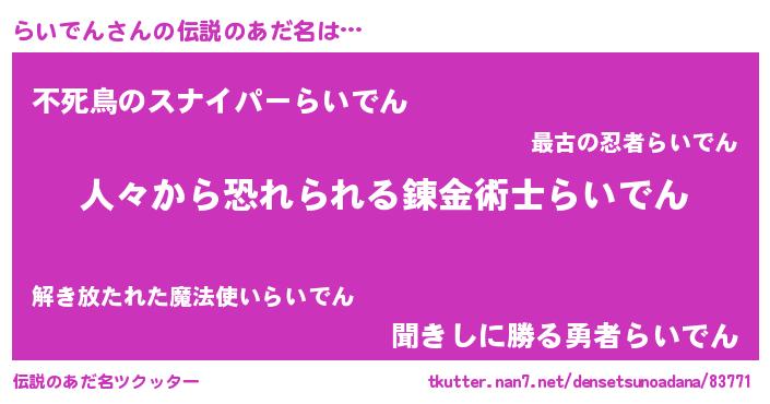 | ヒーロー風カッコイイあだ名 | 『友情の使者らいでん』『仮面ライダー』 |