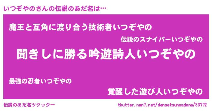 | ヒーロー風カッコイイあだ名 | 『ネオイツゾヤノ』『暗黒騎士イツ』 |