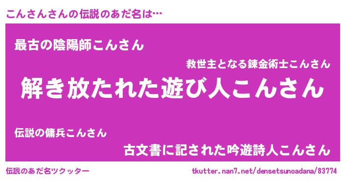 | 意味不明あだ名 | 『住所不定無職こんさん(98歳)』 |