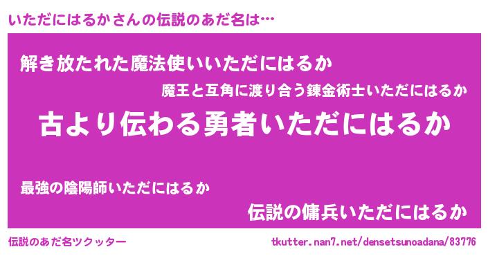| 意味不明あだ名 | 『永久保存いただにはるか』 |