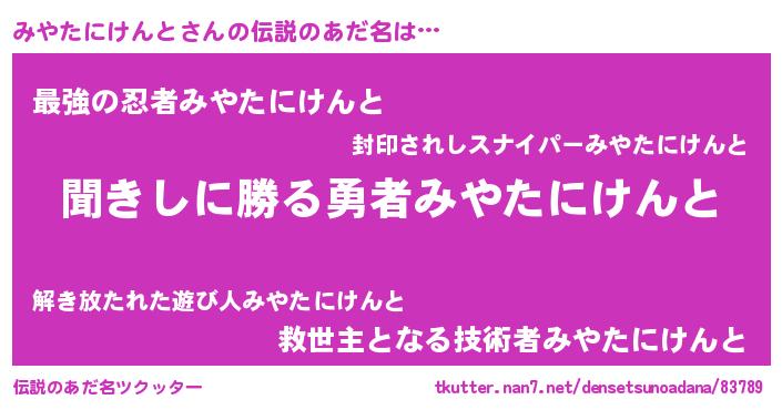 | 意味不明あだ名 | 『永久保存みやたにけんと』 |