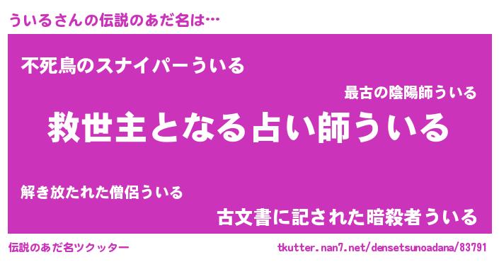 | ヒーロー風カッコイイあだ名 | 『天空の使者ういる』『スーパーウイル』 |