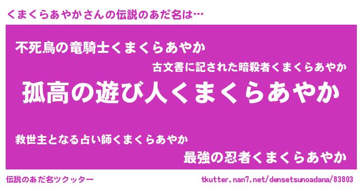 | 胡散臭い通販商品みたいなあだ名 | 『信頼と実績のペンダント…その名も「くまくらあやか」』 |