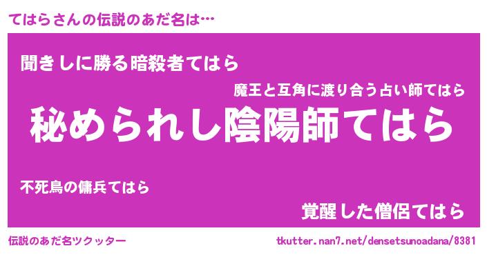 | ポケモン風あだ名 | 『テハセウス』『テハラダネ』 |