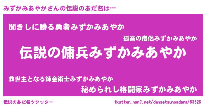 | 男性向けラノベタイトル風あだ名 | 『みずかみあやかの憂鬱』 |
