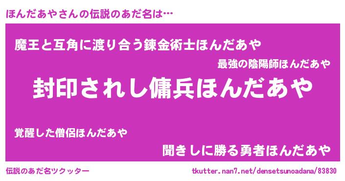 | 胡散臭い通販商品みたいなあだ名 | 『億万長者になれる水晶球…その名も「ほんだあや」』 |