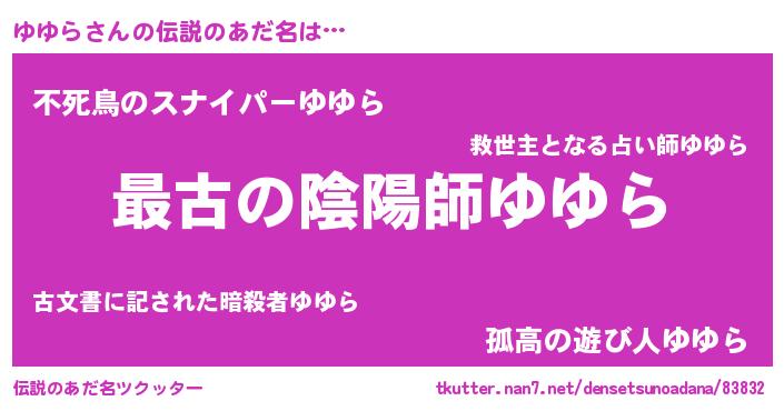 | ファンタジー風あだ名 | 『エターナルユユラー』『ゼユユトゥ』 |