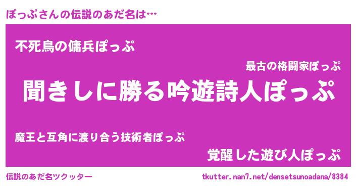 | 意味不明あだ名 | 『住所不定無職ぽっぷ(8歳)』 |