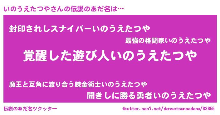 | 男性向けラノベタイトル風あだ名 | 『いのうえたつやの嫁は女の子じゃないと思った?』 |