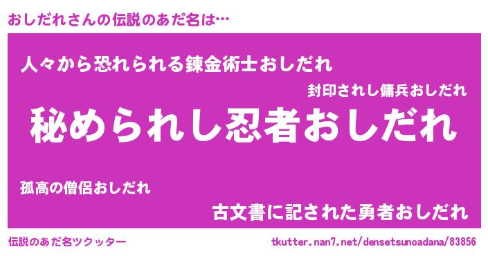 | ヒーロー風カッコイイあだ名 | 『ウルトラおしだれマン』『ネオオシダレ』 |