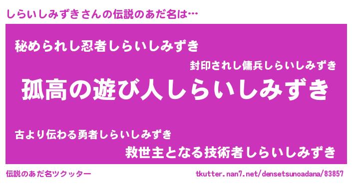 | 胡散臭い通販商品みたいなあだ名 | 『信頼と実績のペンダント…その名も「しらいしみずき」』 |
