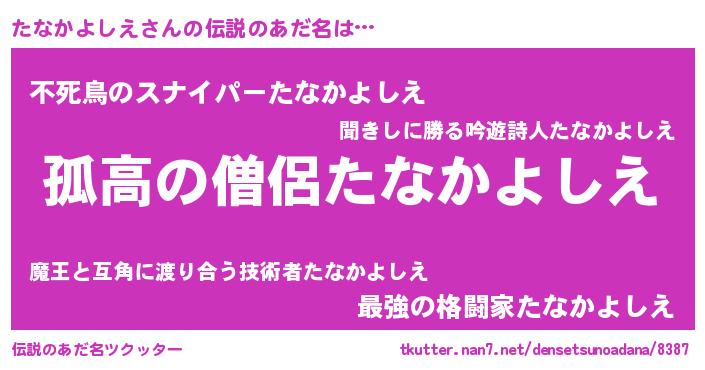 | 肩書あだ名 | 『たなかよしえ中尉』『たなかよしえ塾長』 |