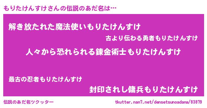 | 意味不明あだ名 | 『住所不定無職もりたけんすけ(86歳)』 |