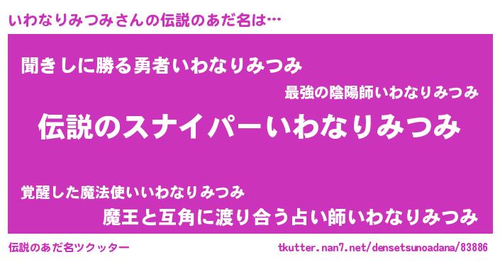 | 胡散臭い通販商品みたいなあだ名 | 『必ず成功する霊験あらたかなお札…その名も「いわなりみつみ」』 |