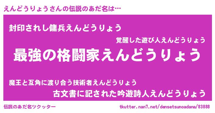 | 意味不明あだ名 | 『えんどうりょうフォーエバー』 |
