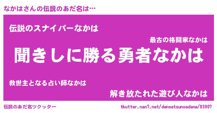 | ヘコむあだ名 | 『なかは(遠い目)』『なかにー』 |