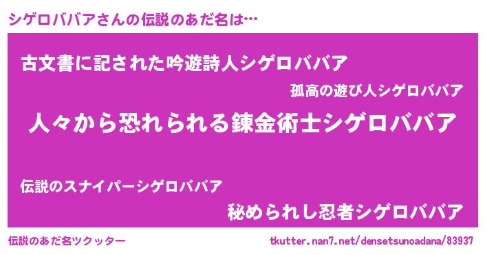 | ヒーロー風カッコイイあだ名 | 『友情の使者シゲロババア』 |