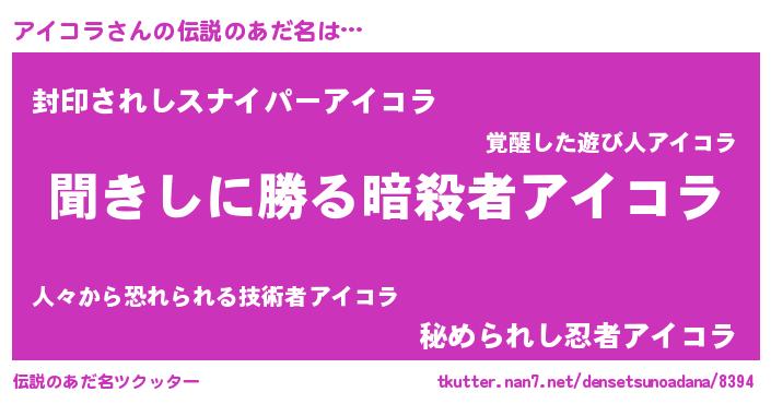 | 胡散臭い通販商品みたいなあだ名 | 『絶対に幸福をもたらす健康食品…その名も「アイコラ」』 |