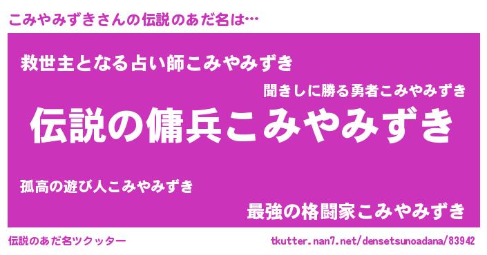 | 胡散臭い通販商品みたいなあだ名 | 『必ず成功する水晶球…その名も「こみやみずき」』 |