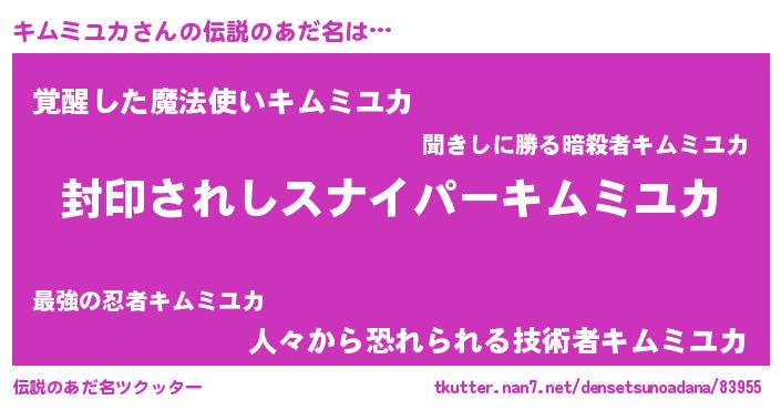 | 意味不明あだ名 | 『住所不定無職キムミユカ(79歳)』 |