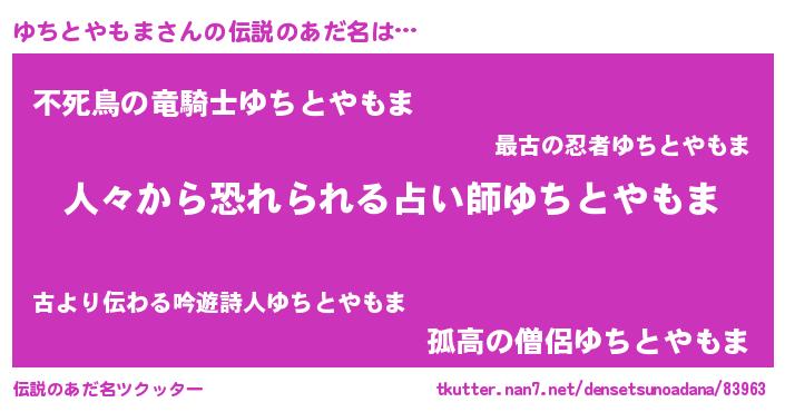 | 胡散臭い通販商品みたいなあだ名 | 『100人中100人が認めたイリジウム磁石…その名も「ゆちとやもま」』 |