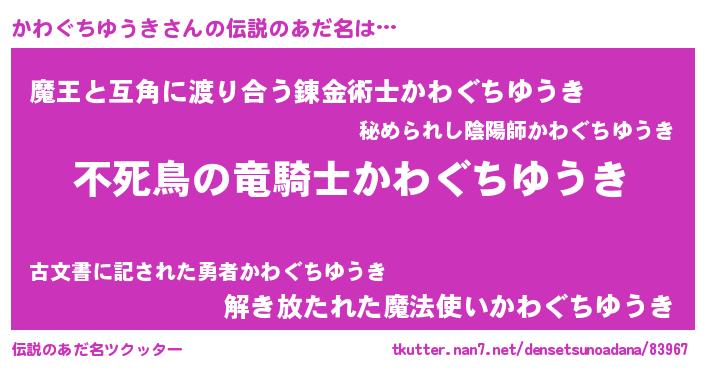 | ヒーロー風カッコイイあだ名 | 『スーパーカワグチユウキ』 |