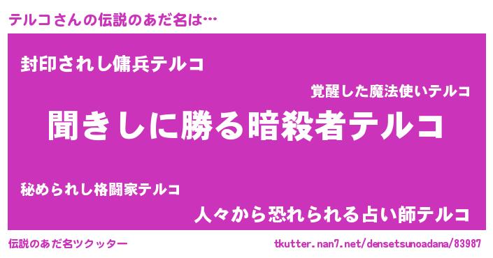 | ヒーロー風カッコイイあだ名 | 『仮面テルダー』『ネオテルコ』 |