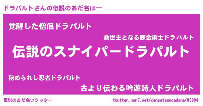 | 胡散臭い通販商品みたいなあだ名 | 『必ず成功する霊験あらたかなお札…その名も「ドラパルト」』 |