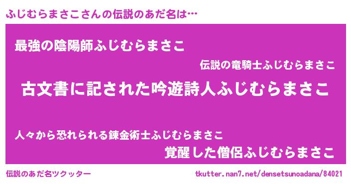 | 意味不明あだ名 | 『永久保存ふじむらまさこ』 |