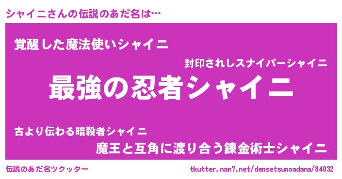| ヒーロー風カッコイイあだ名 | 『ウルトラシャイニマン』『魔戒騎士シャ』 |