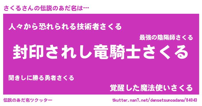 | ヒーロー風カッコイイあだ名 | 『スーパーサクル』『サイバー戦士サクル』 |