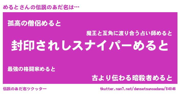 | ヒーロー風カッコイイあだ名 | 『スーパーメルト』『ウルトラ戦士メルト』 |
