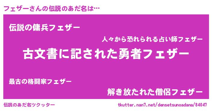 | ヘコむあだ名 | 『フェザー(震え声)』『フェふぇ~』 |