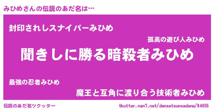 | 男性向けラノベタイトル風あだ名 | 『緋弾のミヒメ』『魔法科高校のみひめ』 |