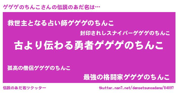 | ヒーロー風カッコイイあだ名 | 『ネオゲゲゲノチンコ』『仮面ゲゲダー』 |
