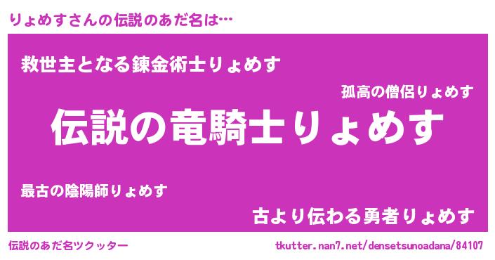 | ヒーロー風カッコイイあだ名 | 『ウルトラ戦士リョメス』『仮面リョダー』 |